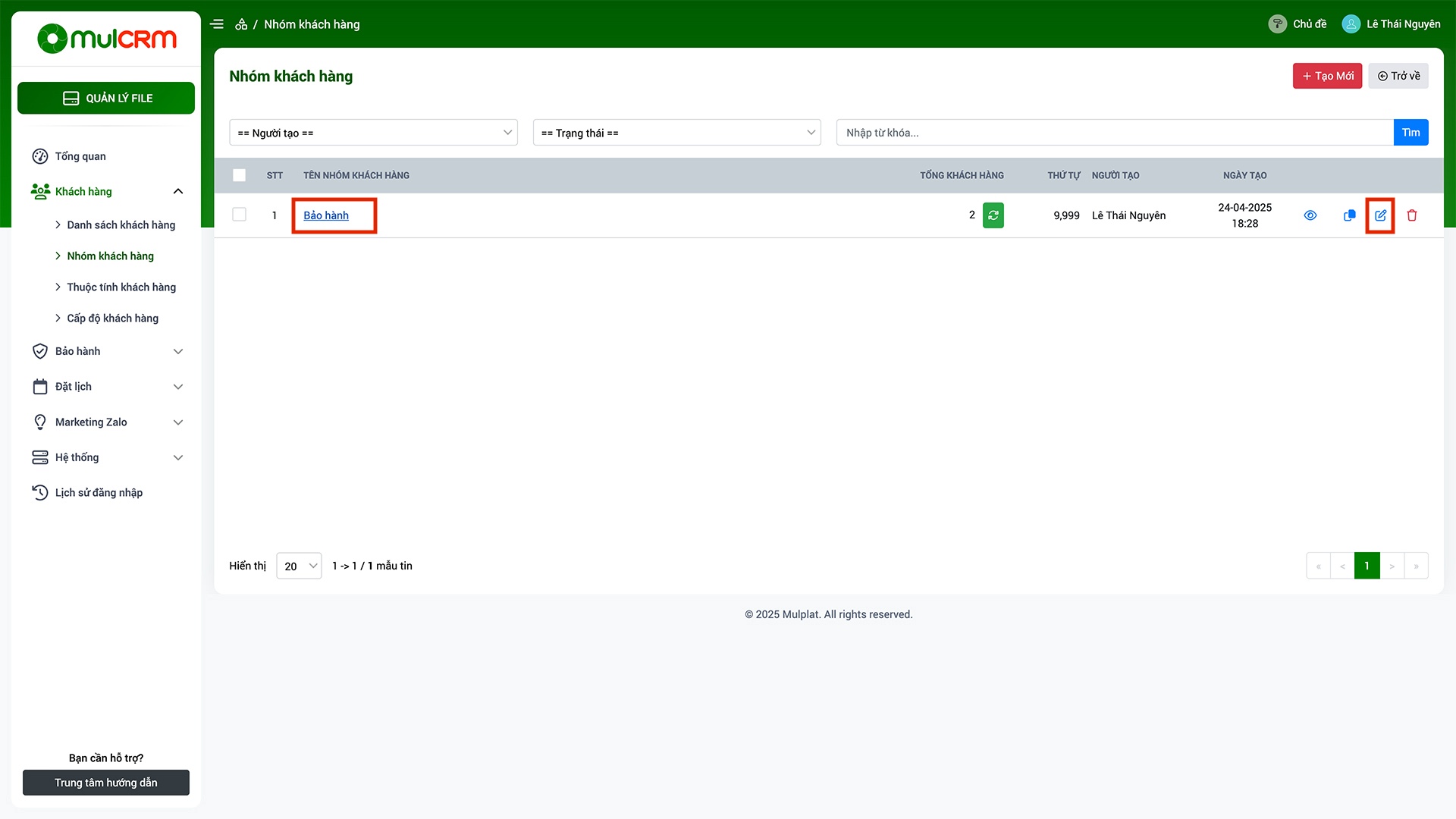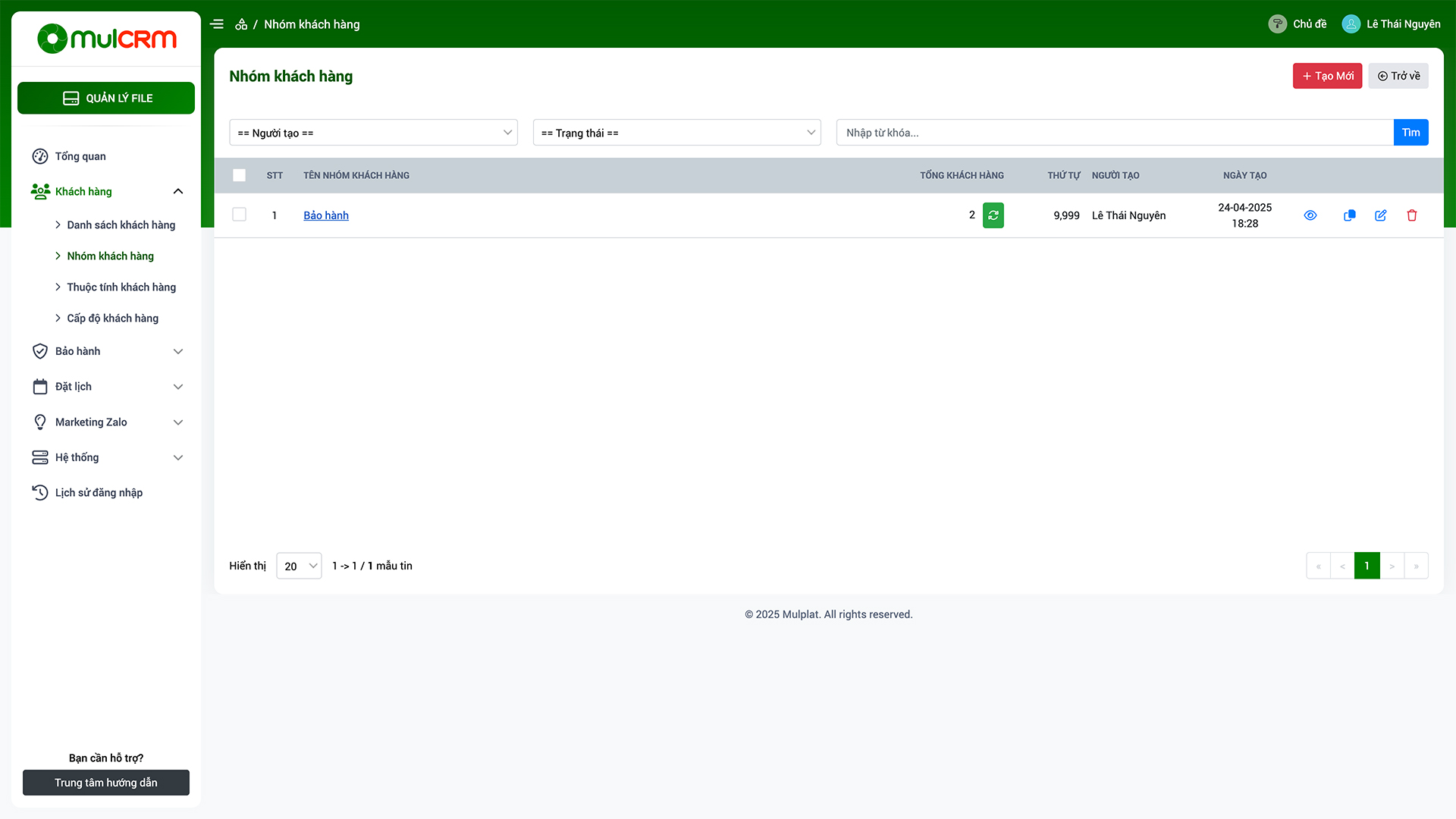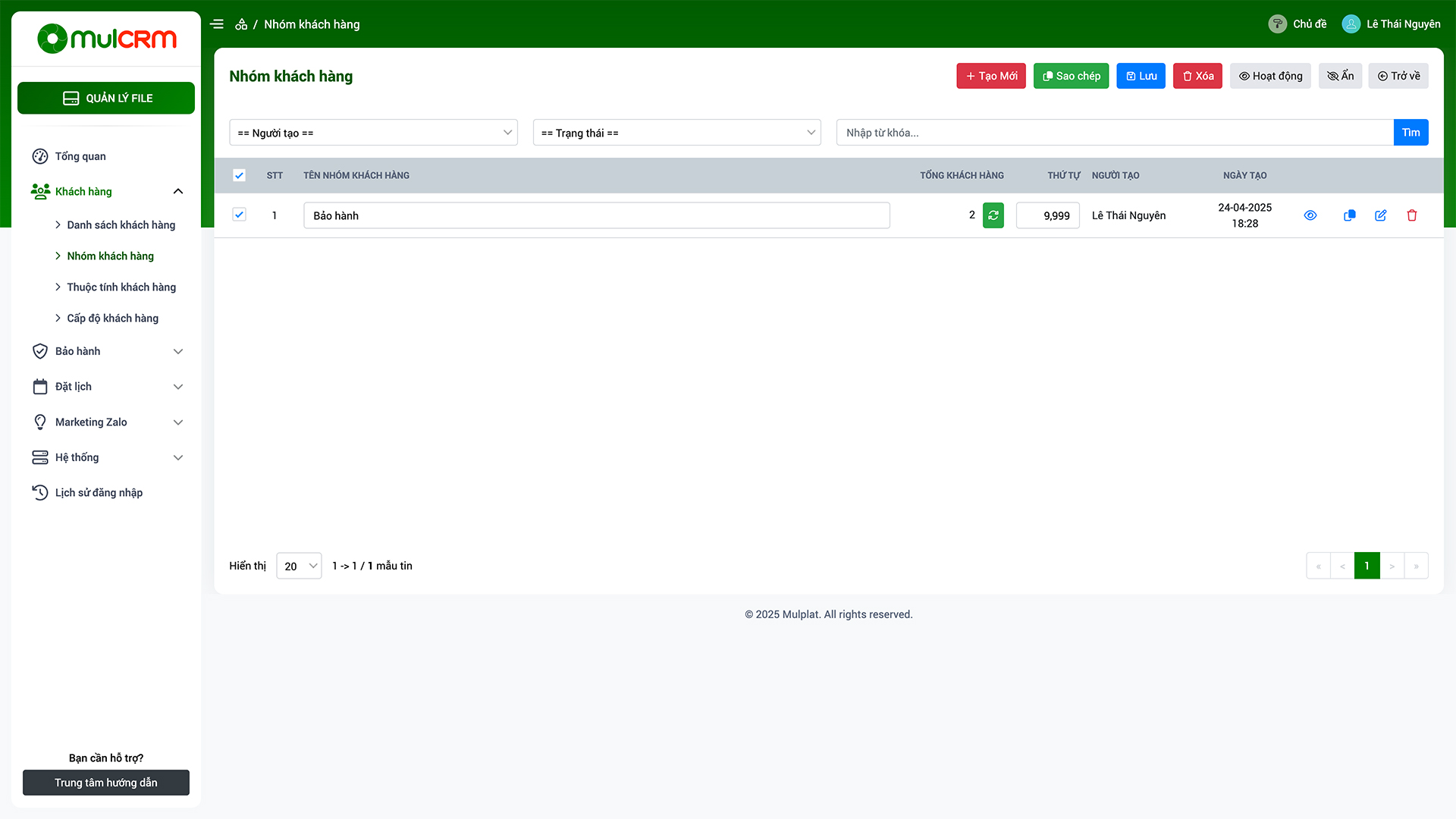 Lưu ý: Thuộc tính "Trạng thái" dùng để hiển thị hoặc ẩn nhóm khách hàng này trong hệ thống.