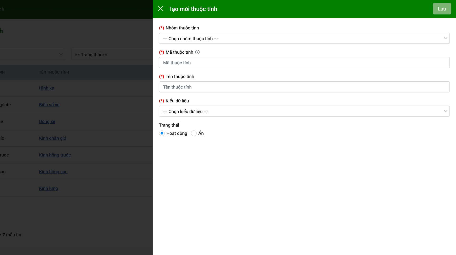 Lưu ý: "Nhóm thuộc tính" phải được tạo trước.